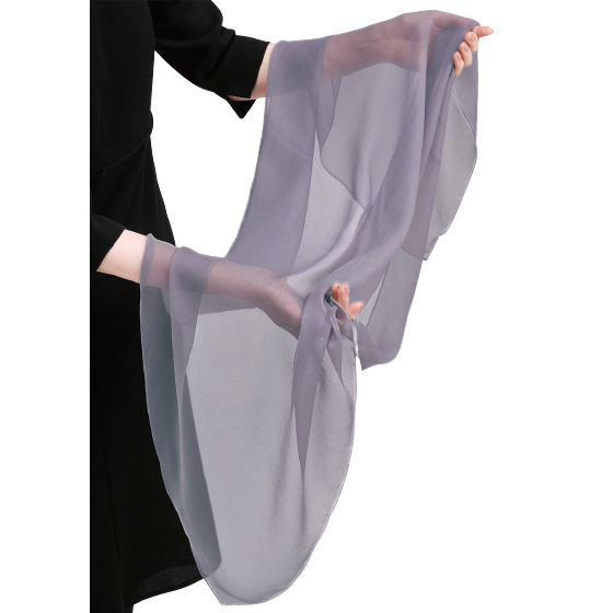正方形の大判サイズ。シルクシフォン素材で肌触りもなめらか。衿元やひざ掛けにと幅広く使えるシルク100%。