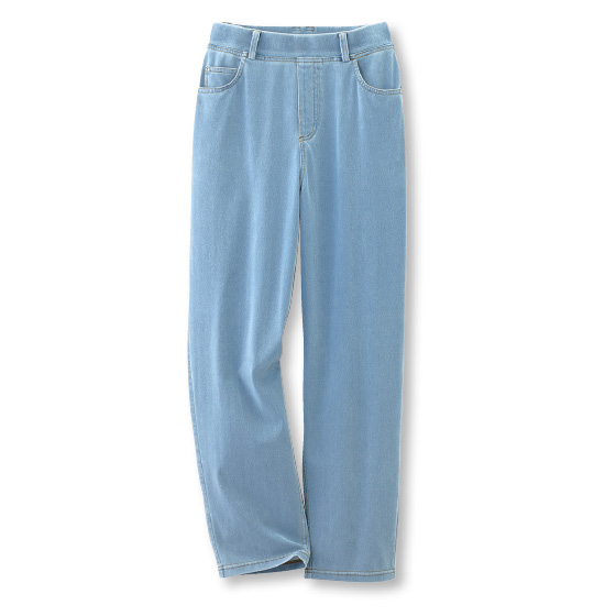 はいた瞬間ひんやり♪やわらかなストレッチニットなので、全方向にぐ〜んと伸びてストレスフリー。ファスナーなしのウエスト総ゴム仕様。締めつけ感が少なく、脱ぎはきもスルッとラク。※夏に着用できます。