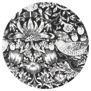 モリスの別荘の菜園で、ツグミがいちごをついばんでしまう出来事を図案化。モリスの作品の中で、最も有名で人気の柄です。