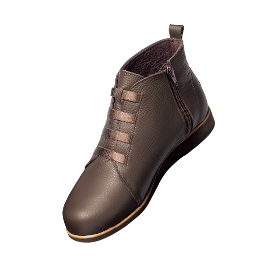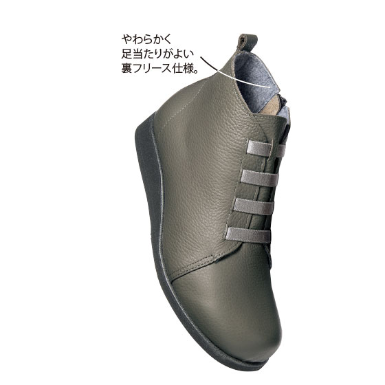 締めつけ感の少ない、リラックスした履き心地は旅行にぴったり。はっ水加工を施しているので急な雨も安心! お手入れもカンタン。サテン調のゴムレースと、内側ファスナーで脱ぎ履きがラク。