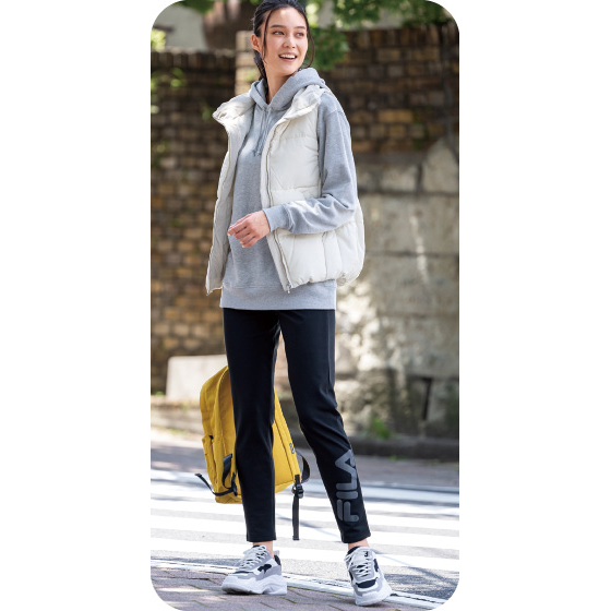 ストレッチ素材で、動きラクラク。もこもこせずすっきりとあったか。