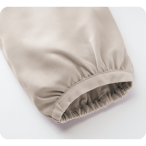 袖口の前側はカフス見え、後ろ側はゴム入りで腕まくりしやすい。