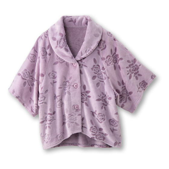 毛足の長いフリース素材だから、ふんわりやわらかく心地よいあたたかさ。花柄の型押しを施した上品なデザインで、気分も華やぎます。