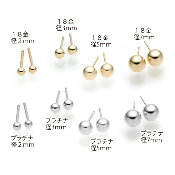 ●材質:18金=18金、プラチナ=プラチナ900、留め具=地金(18金/18金、プラチナ/プラチナ900)入りシリコンキャッチ