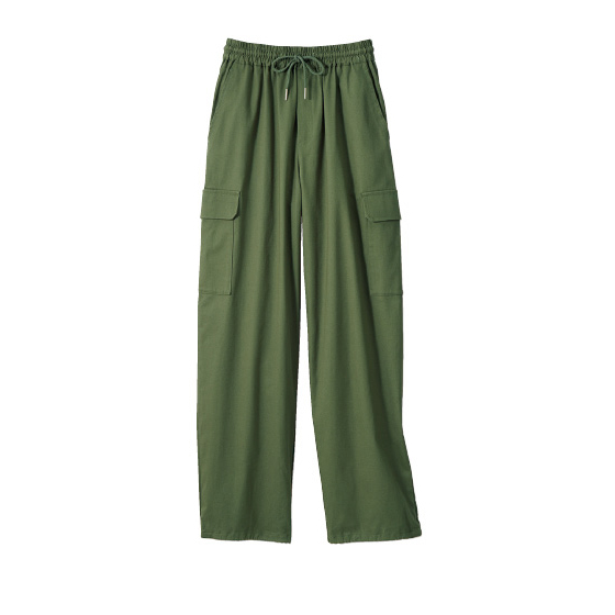 おとなもはきやすい、ほどよくワイドなシルエット。ポケットをアクセントに脚線をカモフラージュ。裾を絞ればコクーン風シルエットにも。※通年着用できます。