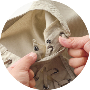 胸元裏にスナップ留めの当て布付きで肌見えをガード。