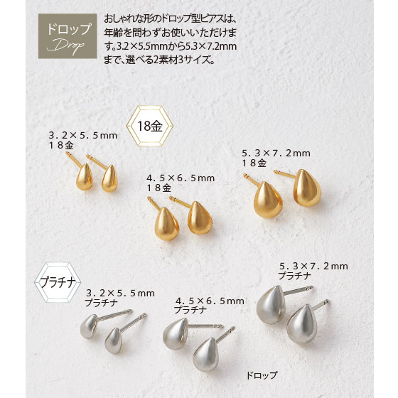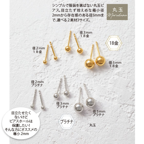 ●材質:18金=18金、プラチナ=プラチナ900、留め具=地金(18金/18金、プラチナ/プラチナ900)入りシリコンキャッチ