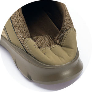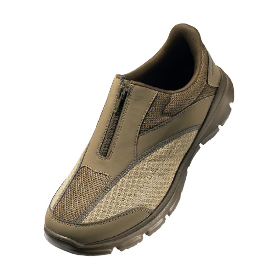 かかとが踏めてちょっとした着脱もラク。前ファスナーで脱ぎ履きもスムーズ。