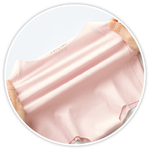 肌になめらか。縫い目のない接着仕様。服にもひびきにくい。伸び〜る綿混。素肌に心地よく、ラクにフィット。●マチ裏は綿混素材です。