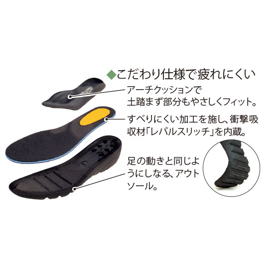 足に合わせてやさしくフィットするストレッチ素材を採用。細部までこだわり、軽くて安定感のある履き心地を実現しました。兵庫のナースシューズメーカー、マリアンヌ製靴が開発、ほぼ手作業で仕上げています。