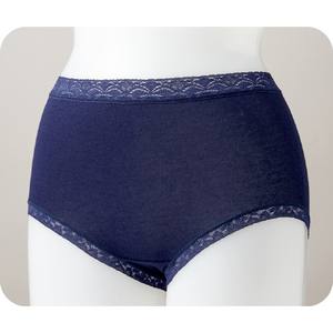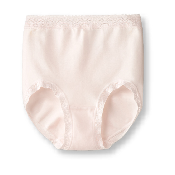 身生地はなめらかな綿混素材。やわらかく包み込まれるようなやさしいはき心地です。ストレッチ性が良く、深めのはきこみでおなかとヒップにぴったりフィットします。●マチ裏は綿混素材です。
