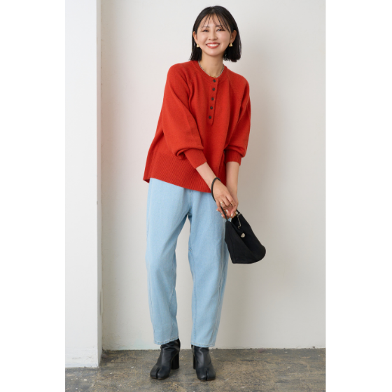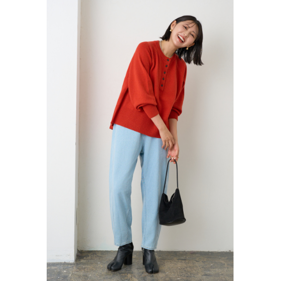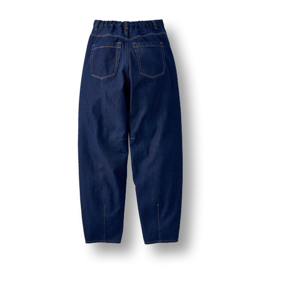 ゆったりとカーブして、ゆるさがかっこいいシルエット。腰回りや脚線をカバーしながら、切替ラインが前寄りですっきり見せるデニムです。厚すぎないしなやか生地で大人にラク。※通年着用できます。