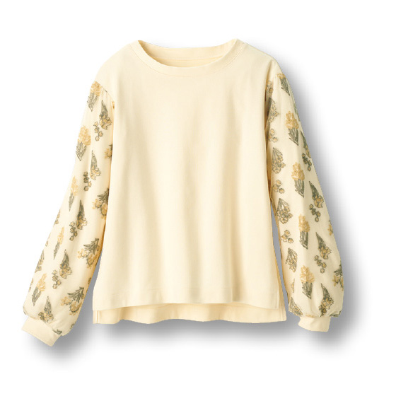 ●素材:綿83%・ポリエステル17%(ニット、ダンボールニット)、袖チュール部分=ナイロン100%、袖チュール刺繍糸=ポリエステル100%