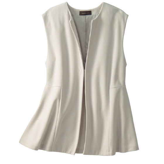 ペプラム切替のフレア感が、上品な印象の華やぎジレ。ジョーゼット風の美カットソーなので、きちんと場面にも着られる映え感です。腰回りをカバーしながら、防シワ素材できれいもキープ。