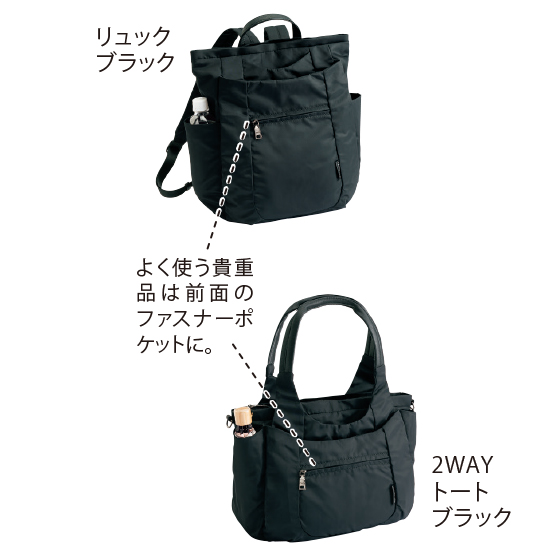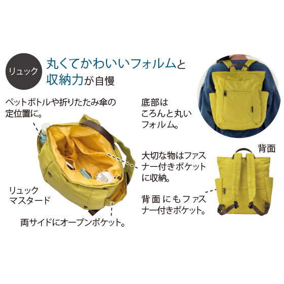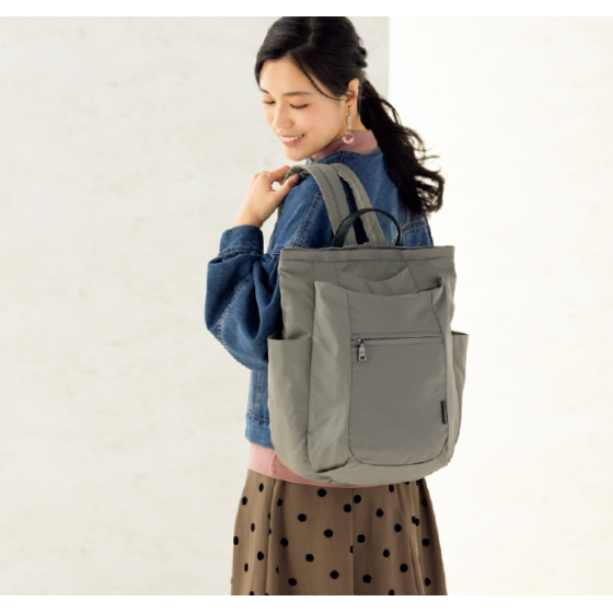デイリーはもちろん一泊旅行にも対応の収納力。軽くて疲れにくく、使いやすいポケットもたっぷりで荷物がバッグの中で迷子になりにくいのもうれしい!