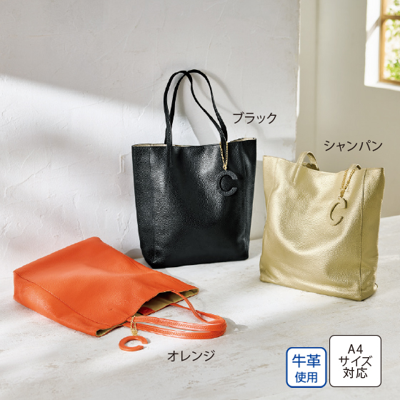 ●素材:牛革、裏地=ポリエステル、持ち手=牛革