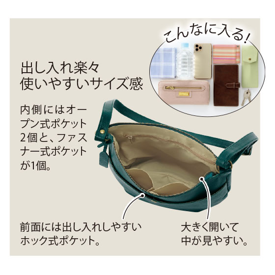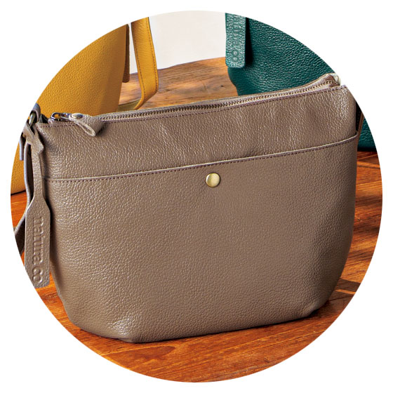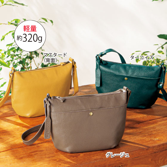 牛革製なのに、食パン1斤よりも軽いという驚きのショルダーバッグ。見た目以上にたっぷり入り、取り出しやすいデザインだから、普段のお出かけから旅行まで大活躍間違いなしです!