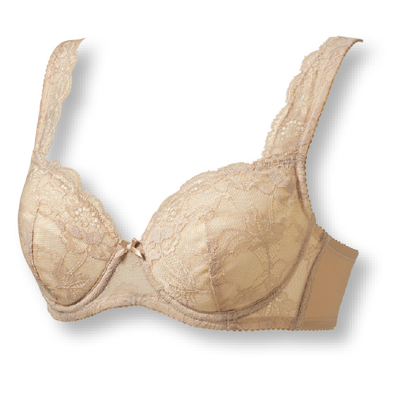 伸縮する幅広の肩ひもがバストをラクに吊り上げ。