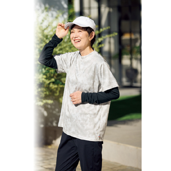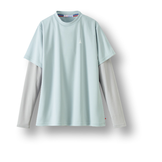 半袖&長袖Tで着回しアレンジ自在。インナーは裏メッシュで通気性がよく、運動時にほしい機能も充実のセット。2枚を重ねて、単品使いでと着回せて、季節のはざまの寒暖差対策にも便利です。半袖Tは、首元の日焼け対策になるモックネック。