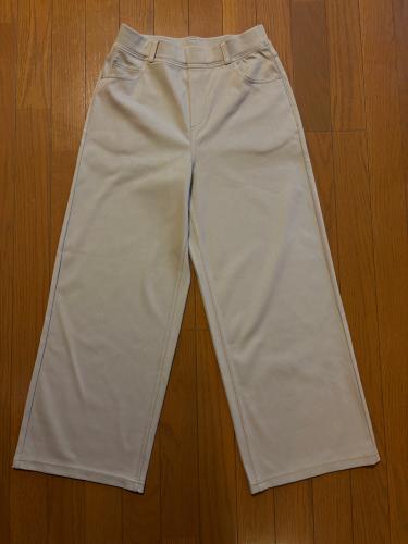 生地が伸びるけれど少し重さがあり、着用した時に裾も少し広めで歩きにくさを感じました。私が背が低いので下に重心が下がって見えてしまい、今回は返品しました。