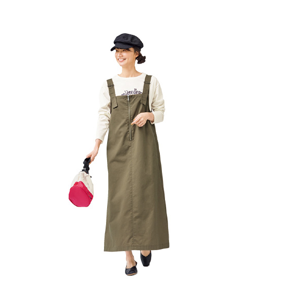 着心地のよい綿混素材。残暑はTシャツ、秋冬はニットなど、インナーを変えて長く着回せます。※通年着用できます。