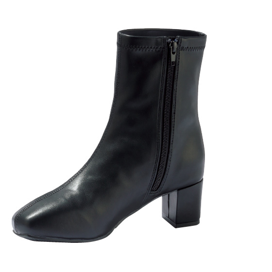日本人に合う足型とストレッチ素材で快適にフィット。はっ水仕様だから天候を気にせず履けます。内側ファスナーで脱ぎ履きもラク。※総丈:約22cm(かかとの高さを含むMサイズの場合)。