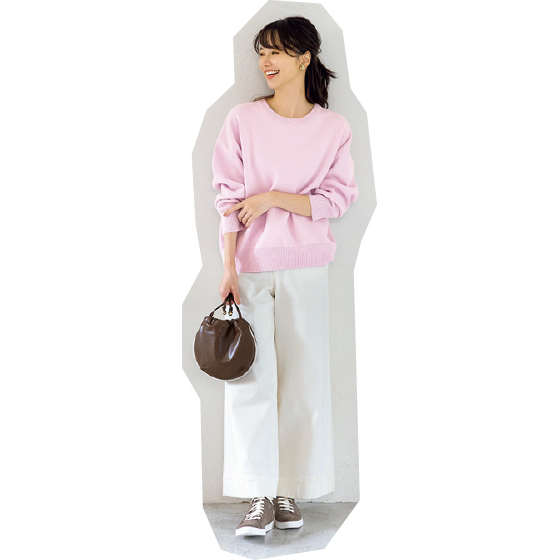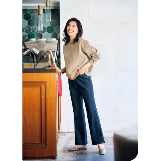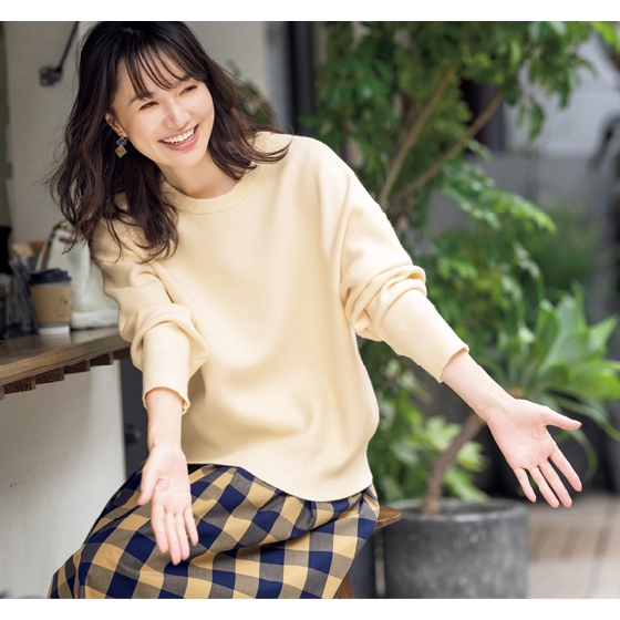 糸に工夫を施して、肌に触れた瞬間ふわっととろける風合いに。カジュアルに着てもおとなっぽく上品に決まります。