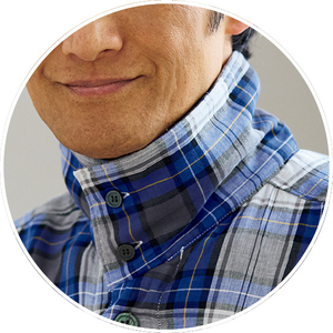 やさしい温もりの綿100%、3重ガーゼパジャマ。飽きのこないベーシックデザインで、衿を立てれば首元あったか。※おなかにやさしいソフティーゴム使用。