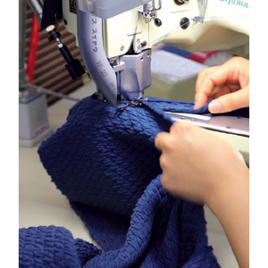 糸の生産、生地の製造・裁断から縫製・検品まですべて日本国内で行っています。