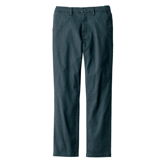 ●素材:インディゴ=綿65%・ポリエステル33%・ポリウレタン2%、カーキ=綿69%・ポリエステル29%・ポリウレタン2%、杢グレー=ポリエステル55%・綿42%・ポリウレタン3%(織物、綾織・ヨコのび、裏起毛・製品洗い加工)