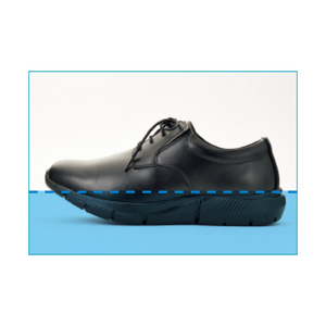 甲の高さと足囲にゆとりをもたせ、足への締めつけ感を軽減。地面から4cm、静止状態で4時間、水が染み込みにくく、雨の日も快適。