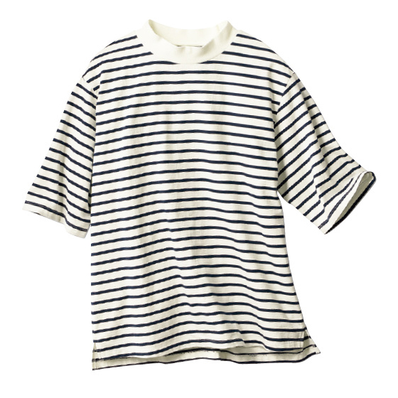 ふくらみ感があって丈夫な綿花を、肉厚なコットン生地に。夏の頻繁な洗濯にもネックがへたりにくく、洗うほどにソフト感アップ。