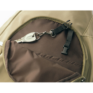 前ポケットに着脱可能なキーフック付き。