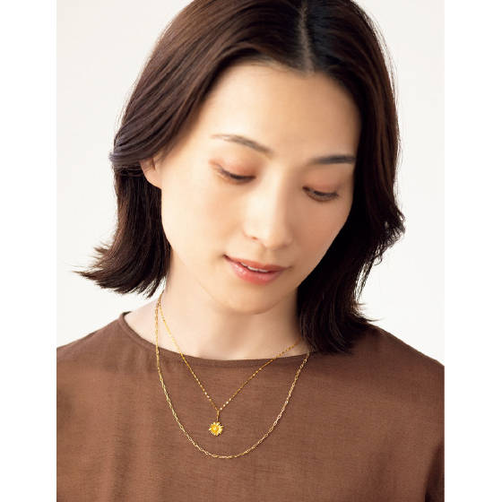 胸元を可憐に彩る、甘さを抑えた大人のフラワー。