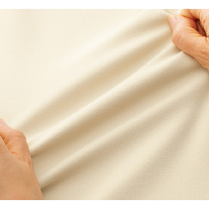ほどよい厚みのジョーゼット調カットソー素材は、肌離れがよくサラリ。ストレッチ性もあり、ストレスフリーな着心地です。