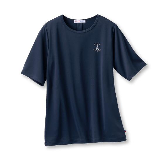 裏は通気性のよいメッシュで、汗をかいてもサラッと快適。おなか回りをカバーするシルエットでふだんにも活躍するデザインです。ゆったりめの袖で二の腕をカバー。後ろタックでシルエットふんわり。