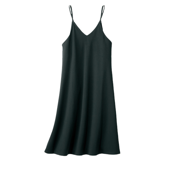 きれいな表面感で布帛見えするカットソー。シワが気になりにくくお手入れもラク。肩ひもはアジャスター付きで調整可能。