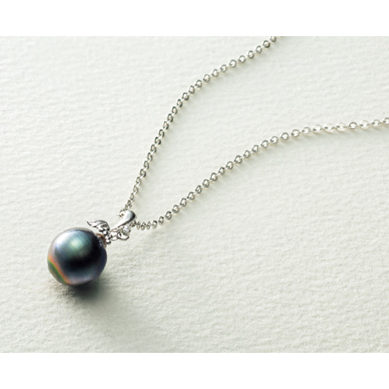 光の加減や角度によって表情を変える、神秘的な輝きと艶が特長。ひと粒でもボリューム感があり、胸元がぐっと華やかに。