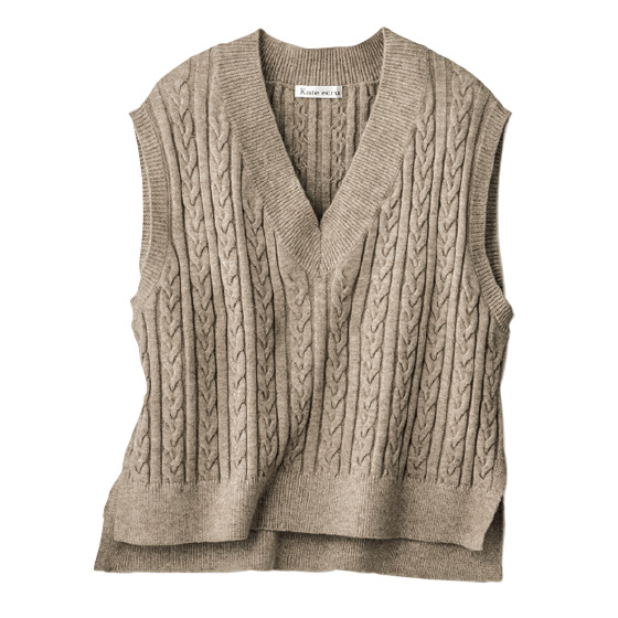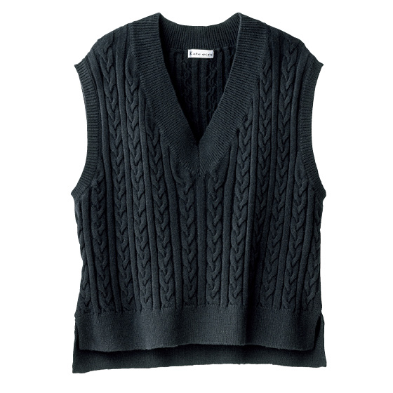 レイヤードにやさしく映える、ケーブル柄がコーデの主役。