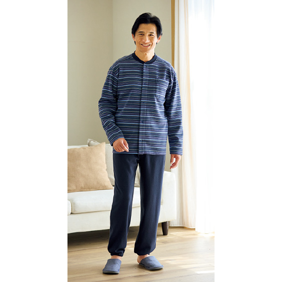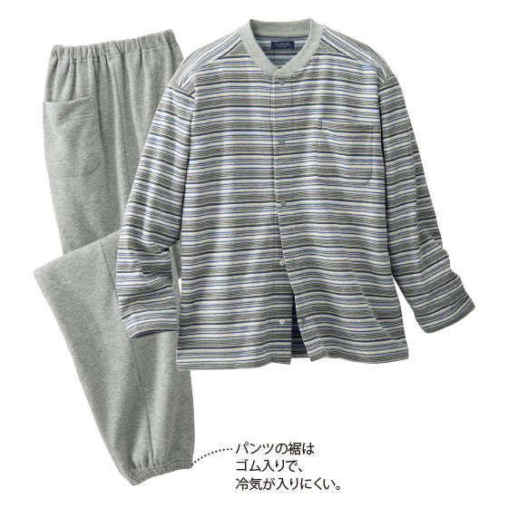 ●パンツ=ポケット1個付き、ウエストアジャスターゴム仕様、ゴム取替口あり、前開き(ボタン付き)