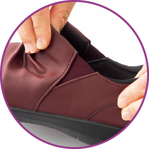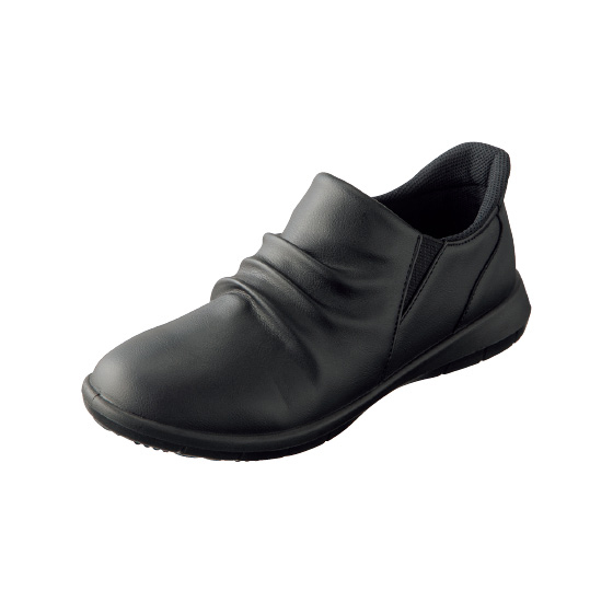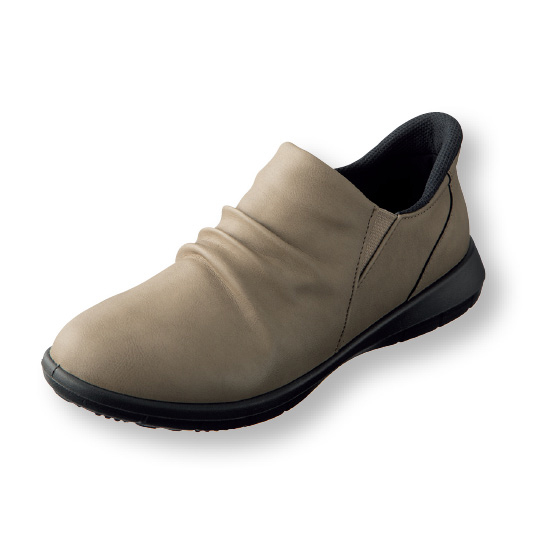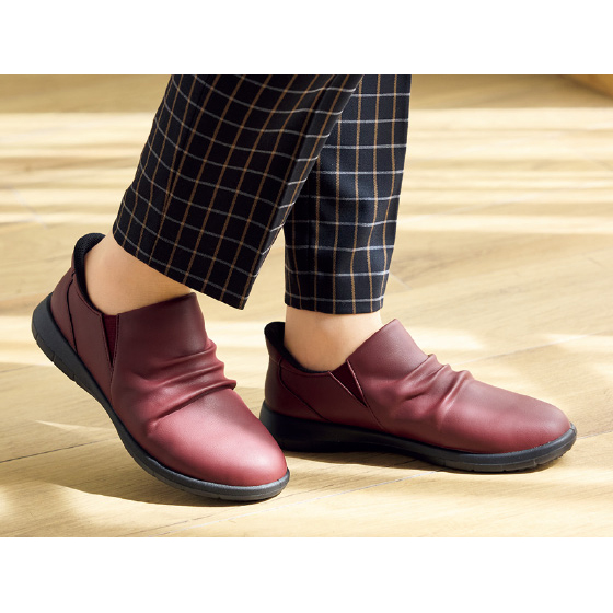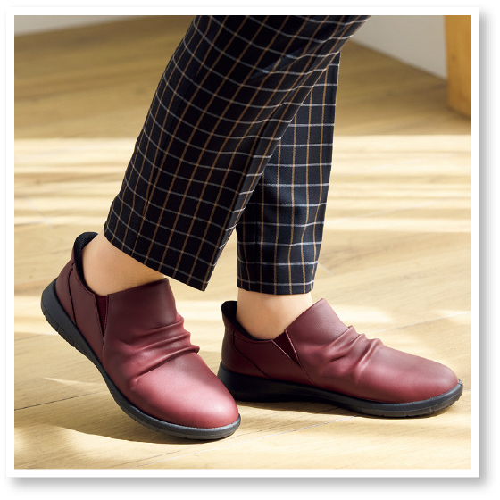 足をすべらせてスポッと履けるスリッポン。両サイドゴム入りで、脱ぎ履きスムーズ。
