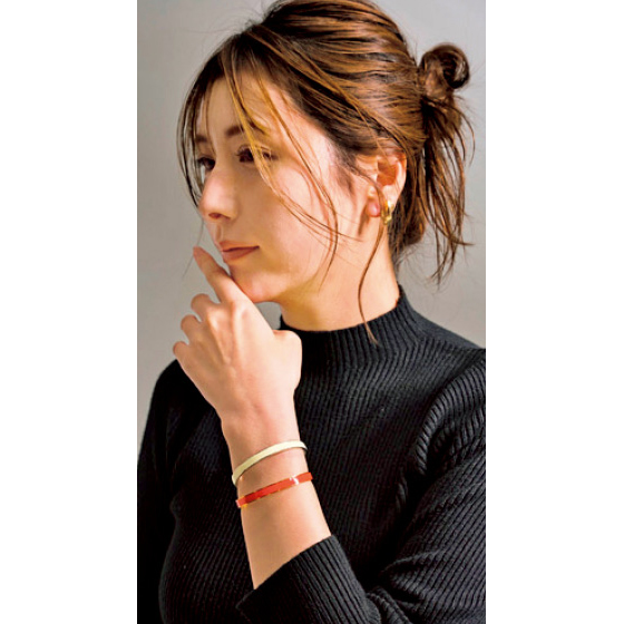 単品でも重ねづけでも素敵。肌に当たる内側にゲルマニウム鉱石を2個内蔵しています。