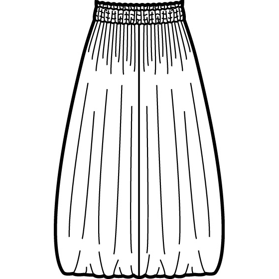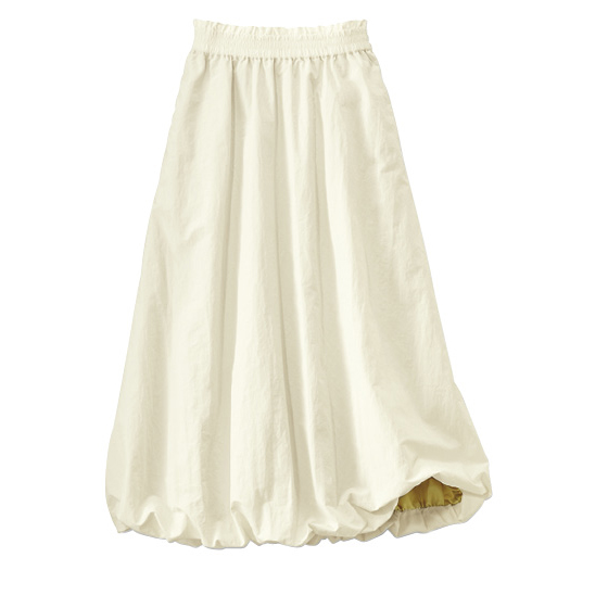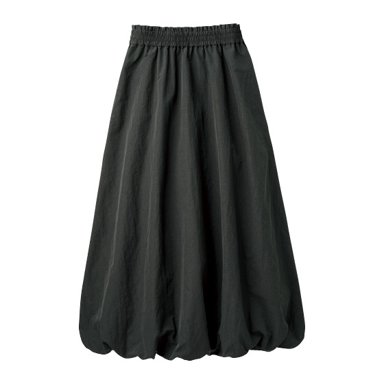 ウエストからヒップにかけてボリュームをおさえた、大人もはきやすいバルーンシルエット。裾の内側がゴム仕様で脚さばきもラク。※通年着用できます。
