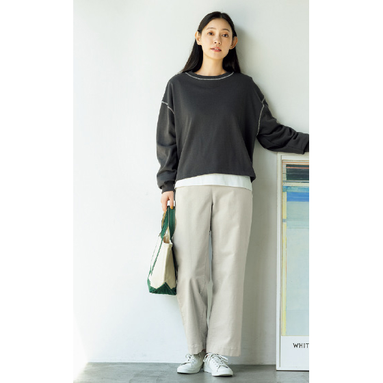 裏起毛をかけたコットン混のあったか素材で、見た目も冬らしい印象に。太すぎず細すぎない絶妙なワイドシルエットで、重くなりがちな冬コーデも軽やかに決まります。※春冬に着用できます。