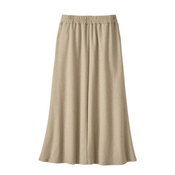 腰回りはすっきり、裾に向かってきれいに広がるフレアラインで華やかな印象に。脚さばきがよく、縦長ラインですらり美脚見えも叶います。ウエストは総ゴムでラクなはき心地。※冬に着用できます。