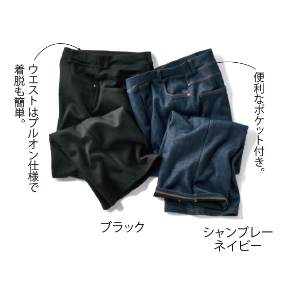 ウエストはプルオン仕様で着脱も簡単。便利なポケット付き。※春冬に着用できます。