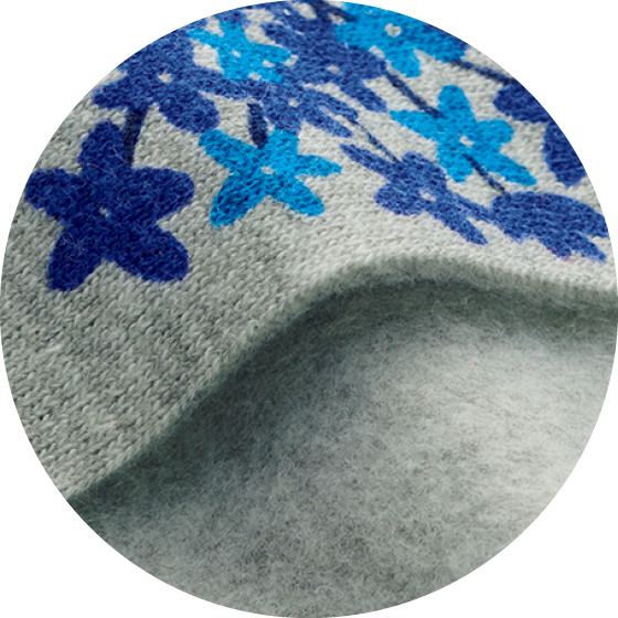 ※写真と柄の出方が多少異なります。起毛素材の特性上、着用中の摩擦や洗濯により、毛羽付着や毛玉が生じることがあります。