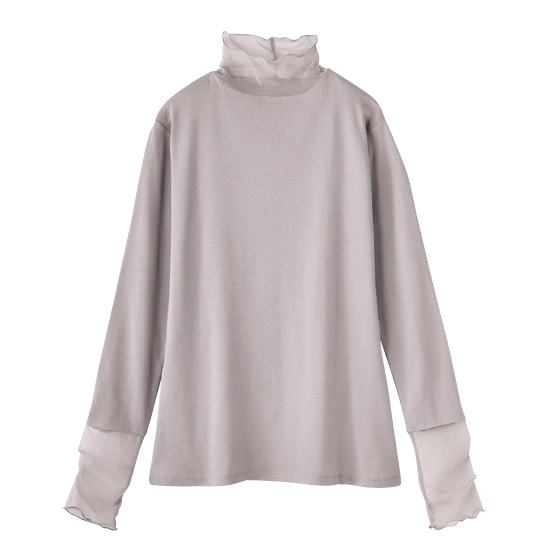 衿元と袖口がチュール、身生地は吸湿発熱素材で暖かな着心地。いつもの服と重ねるだけで新鮮な表情に。