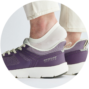 かかとの形状を工夫し、手を使わず、立ったまま履けて便利!
