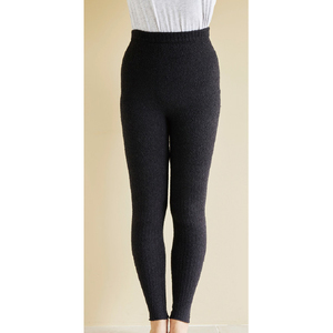 腰から太もも、足首へと少しずつ着圧が上がるよう編んでいるため、心地よい締め付け感。一日中むりなくはけて、動きやすい。